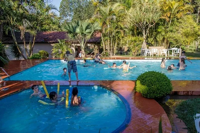 Atrativos: Reserva Ecológica com cachoeira e piscina natural, animais silvestres criados soltos (Tucanos, Seriemas, Papagaios, Maritaca e etc....) que convivem em harmonia com hospedes e encantam as crianças, lagoas para pesca, monitores com programação especiais para adultos e crianças, piscina, sauna e muito mais. (Café da manhã, almoço e Jantar)